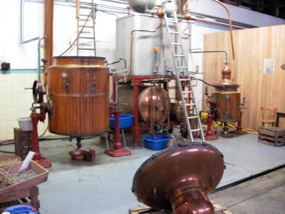 昔、自動車工場だったためかなり広い部屋の隅に蒸留器があります。
