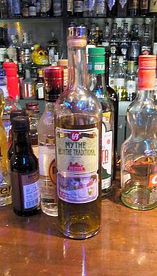 色が透明で糖分がないアブサン・スピリット。呑み過ぎると危険そうな品物です。舌がびりびりくる感触がグッド!これがツヨン感触なんでしょうか?オルディネール博士の製法を再現した一品のようです。 |